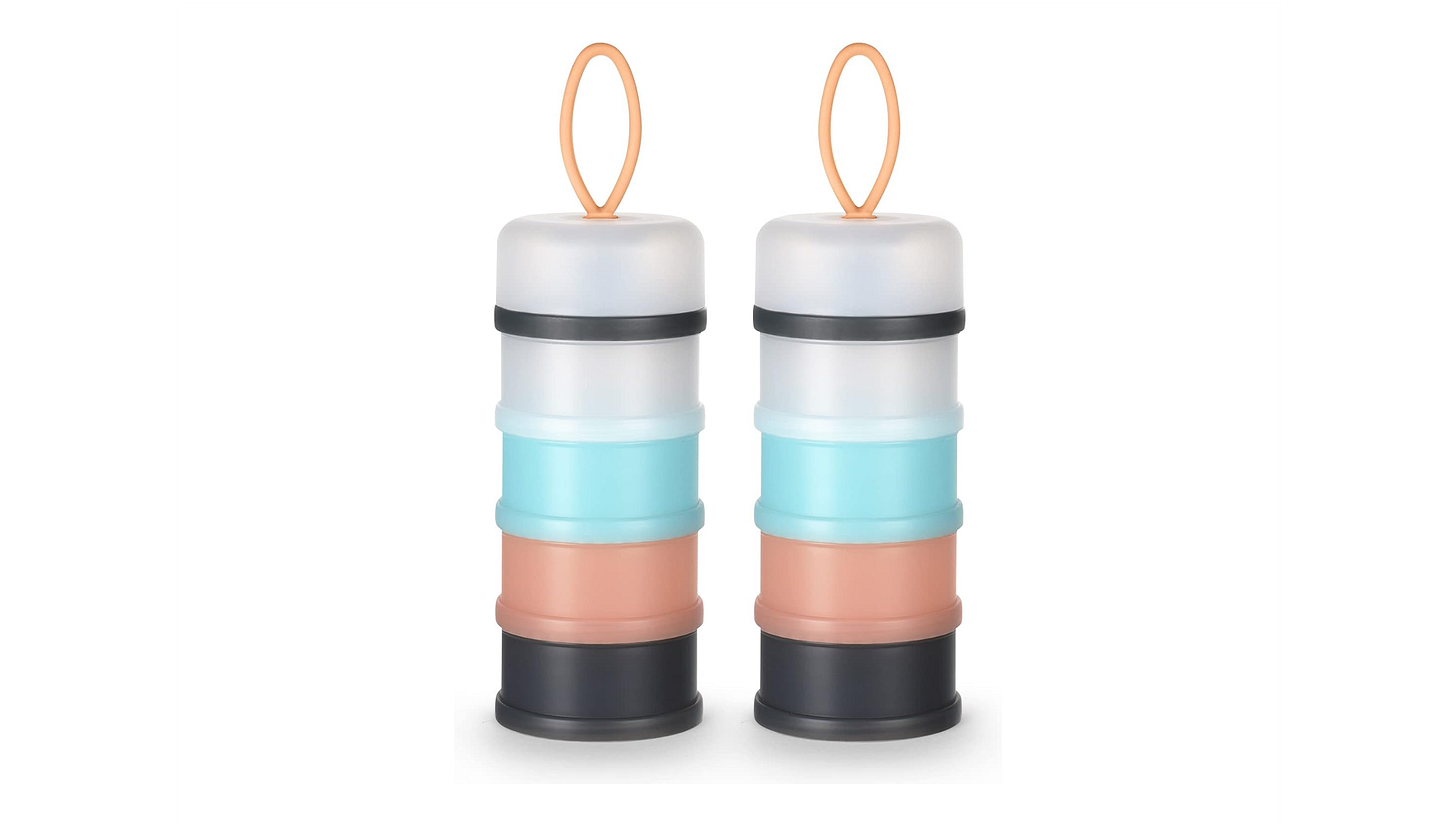Designed primarily for baby milk powder, these stackable travel dispensers are perfect for storing portioned out protein powder.